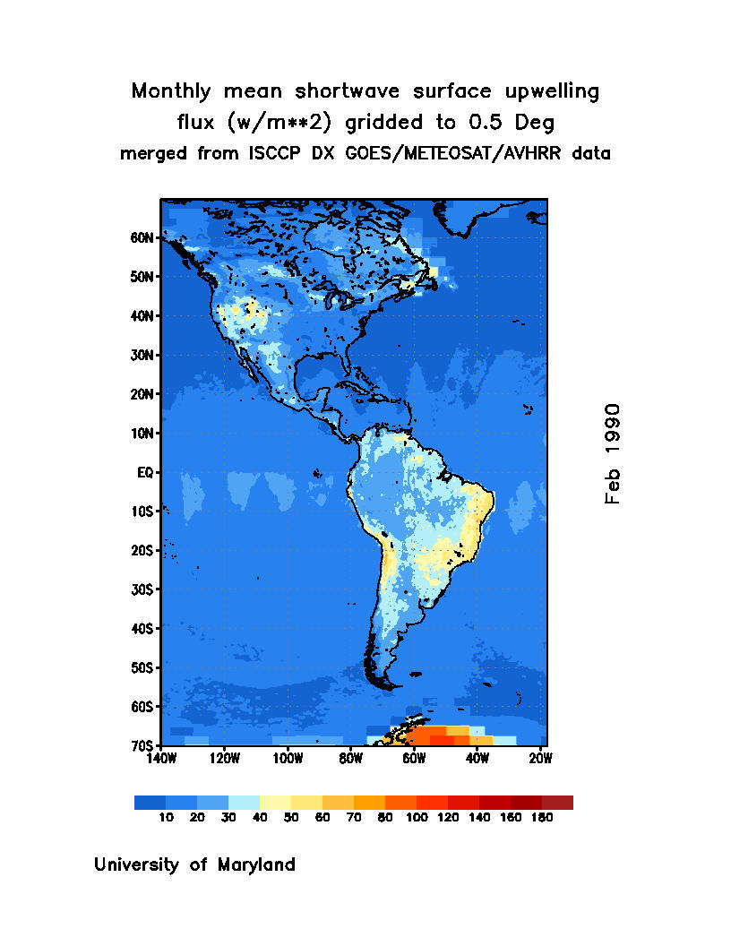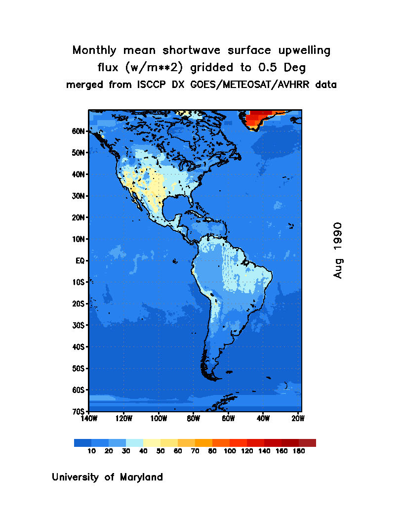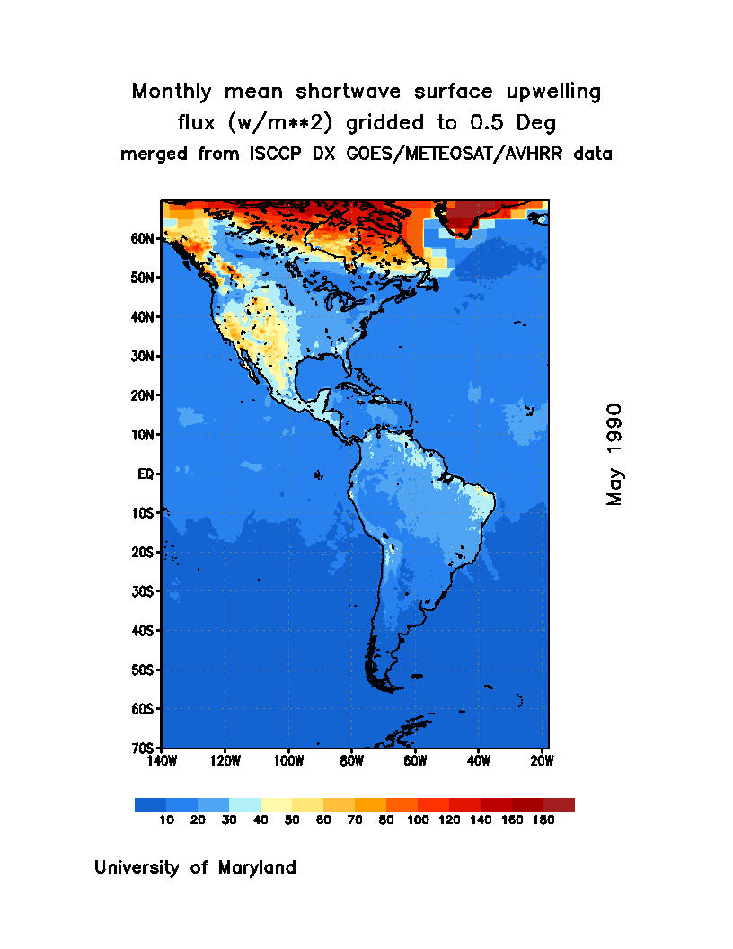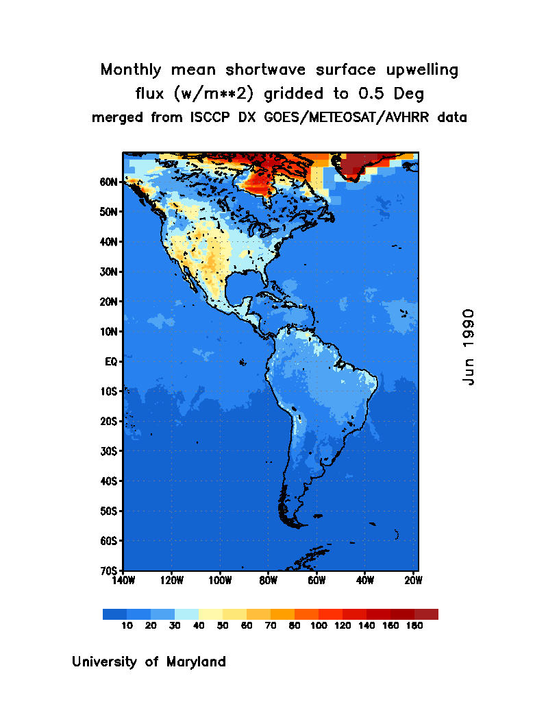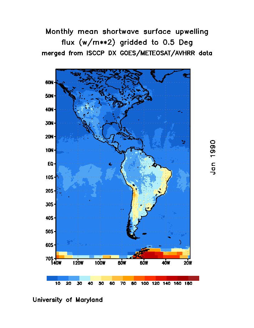 Monthly Mean Shortwave Surface Upward Flux (Wm