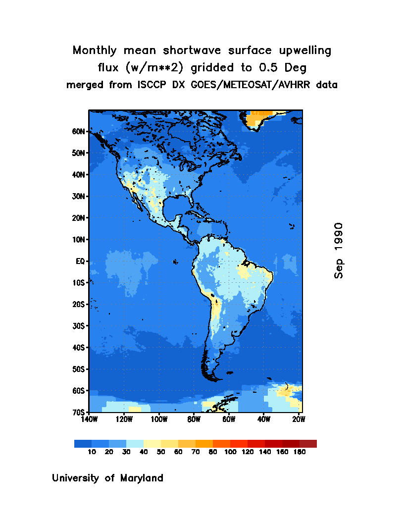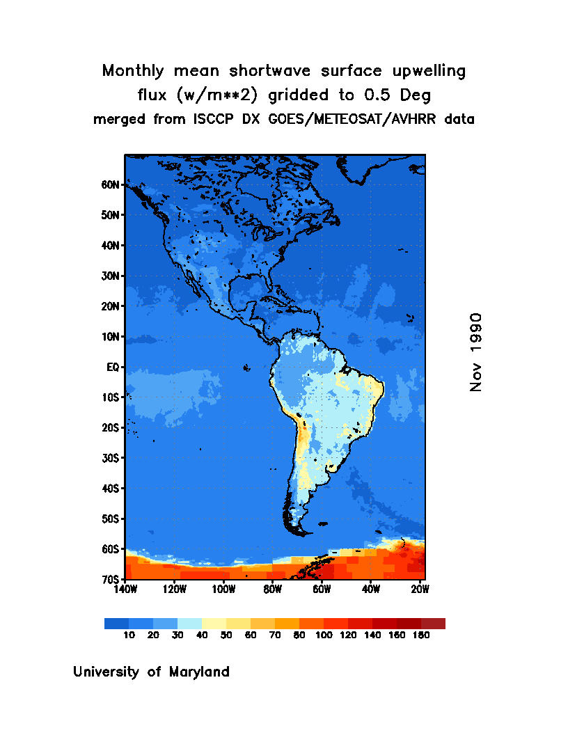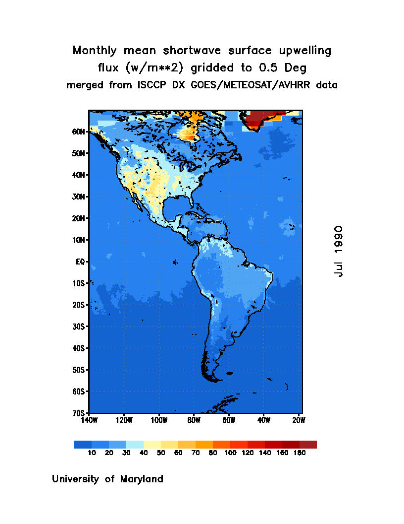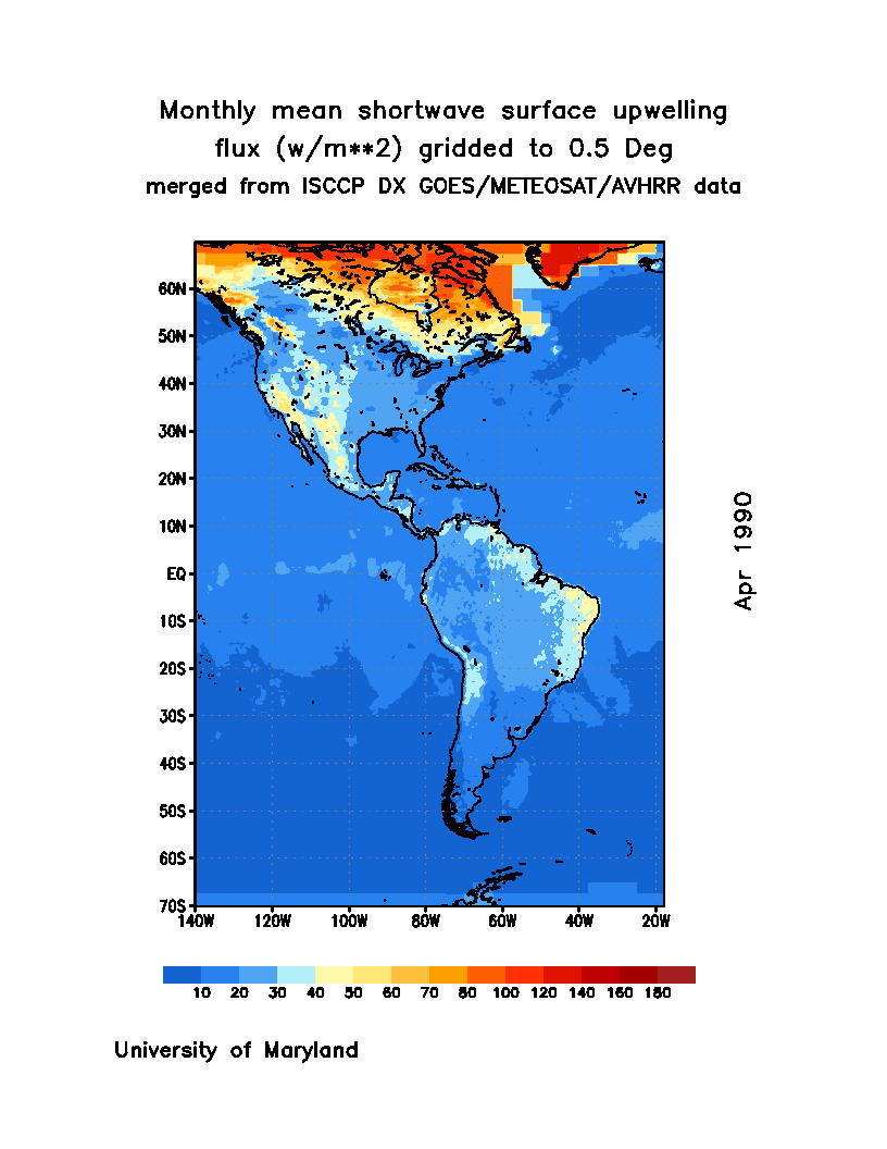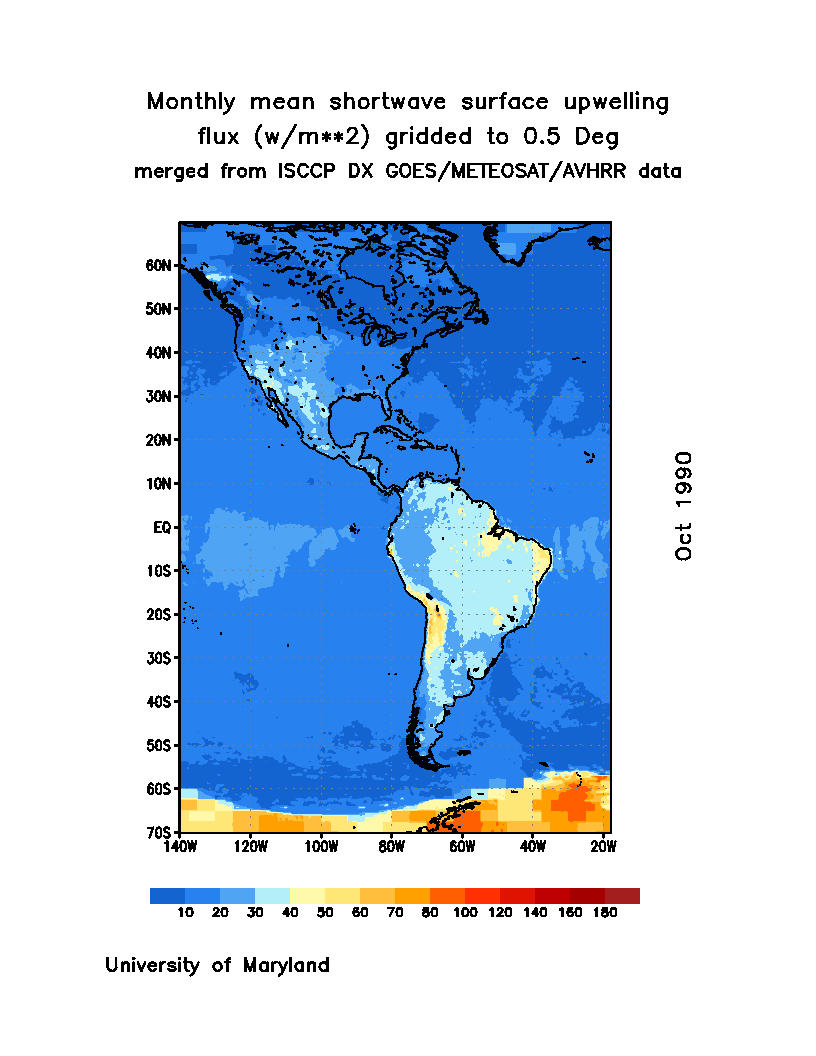 Monthly Mean Shortwave Surface Upward Flux (Wm