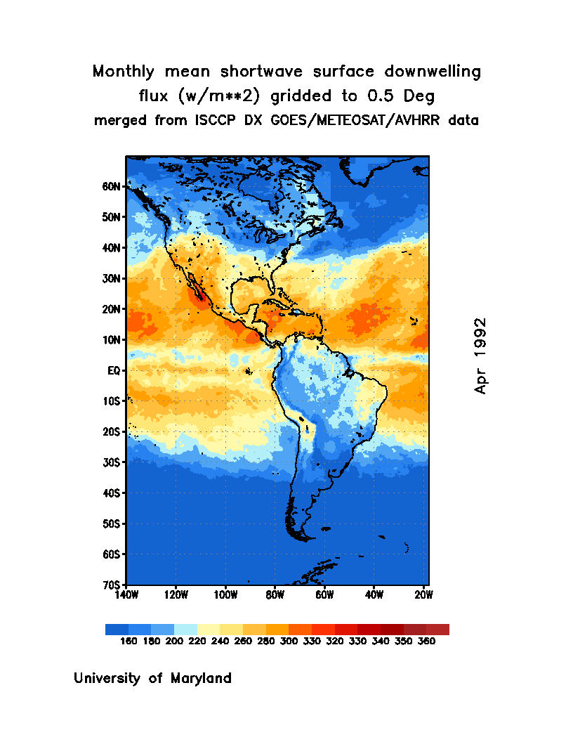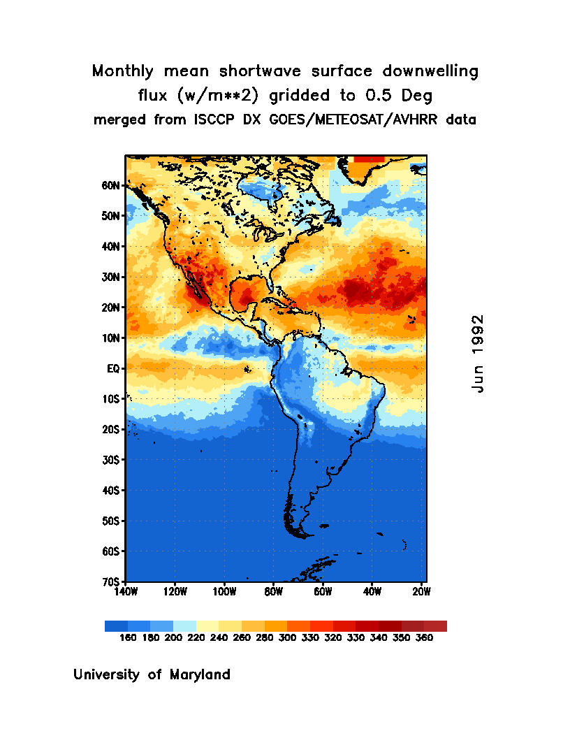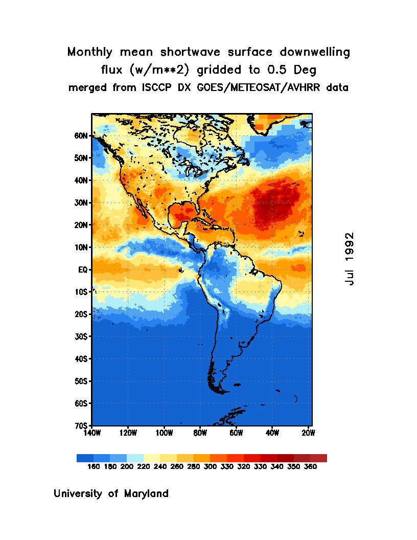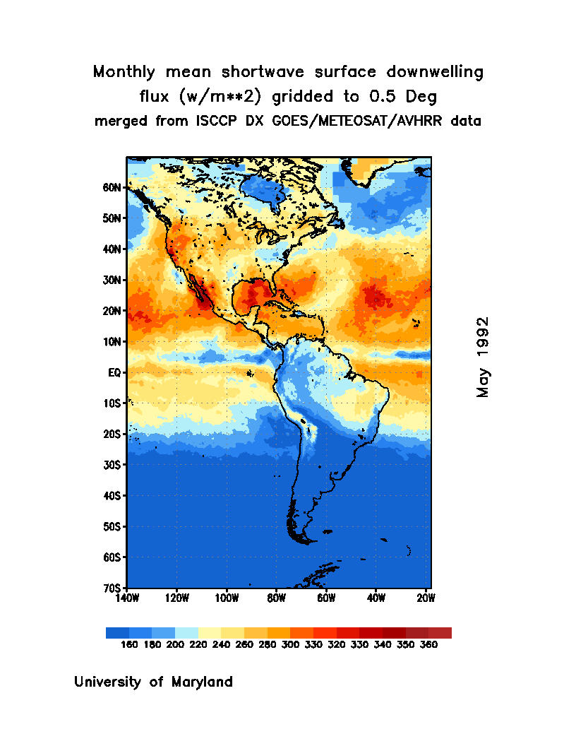 Monthly Mean Shortwave Surface Downward Flux (Wm