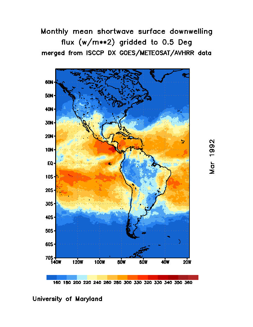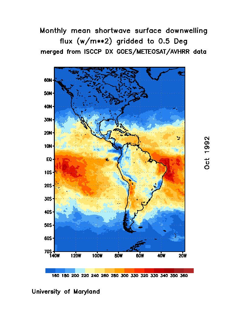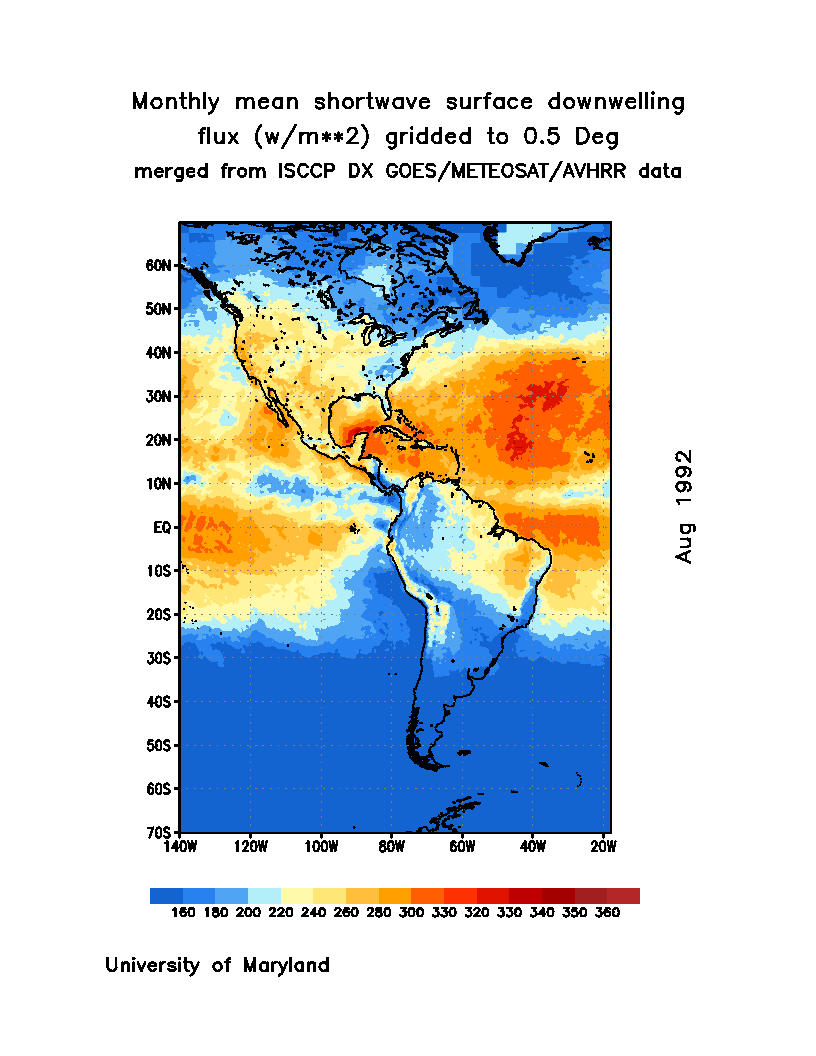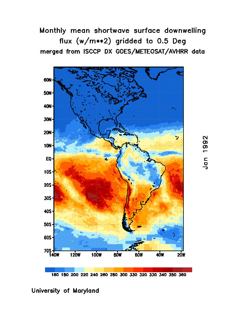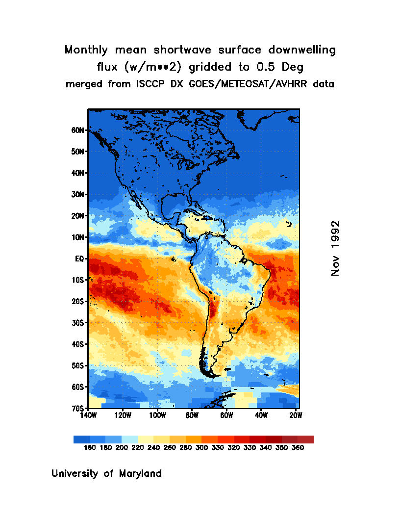 Monthly Mean Shortwave Surface Downward Flux (Wm