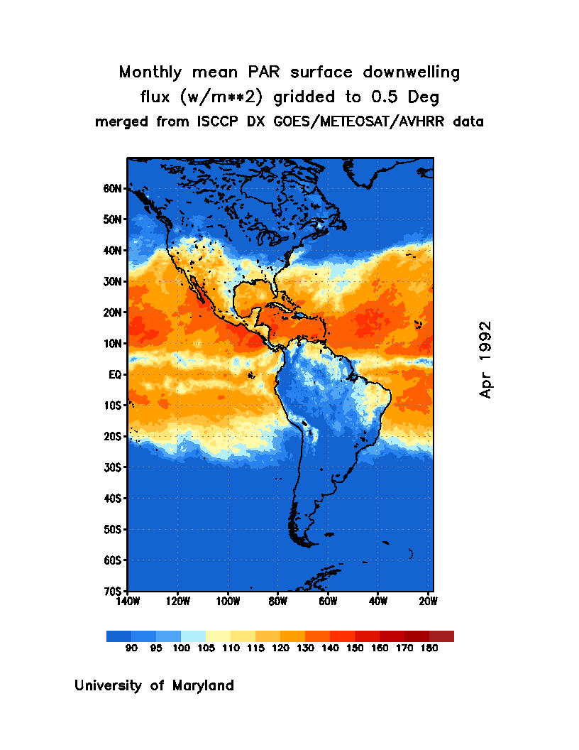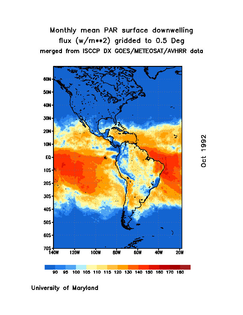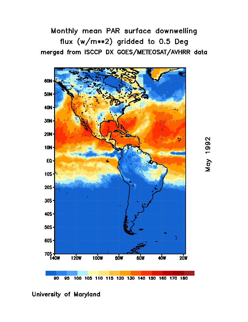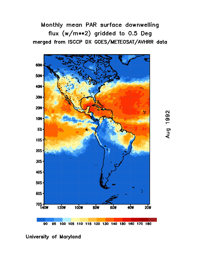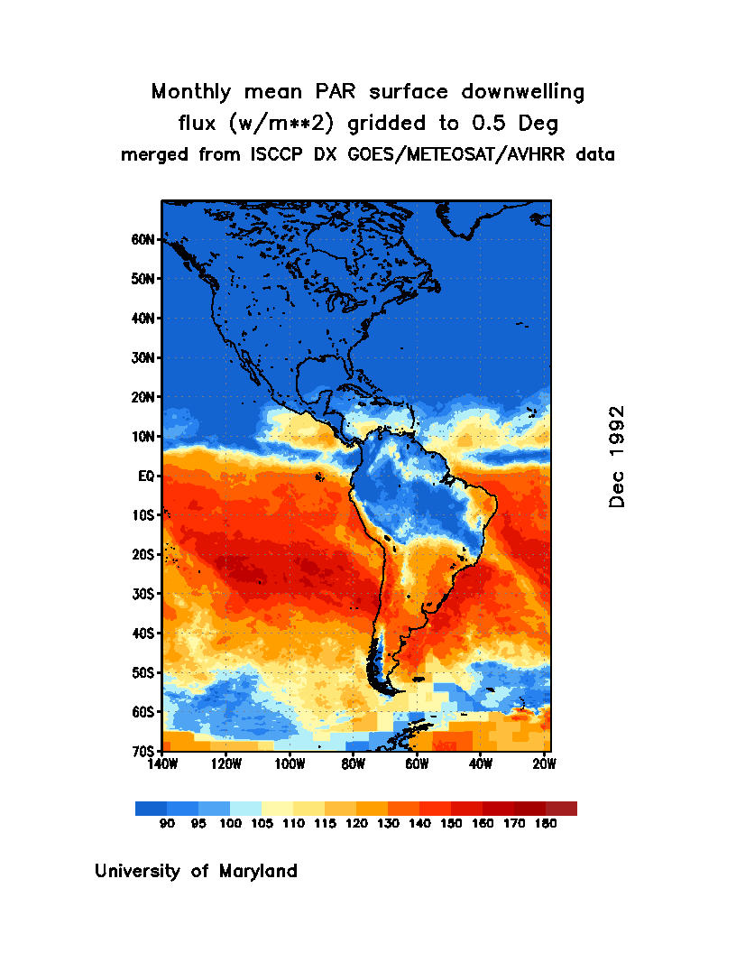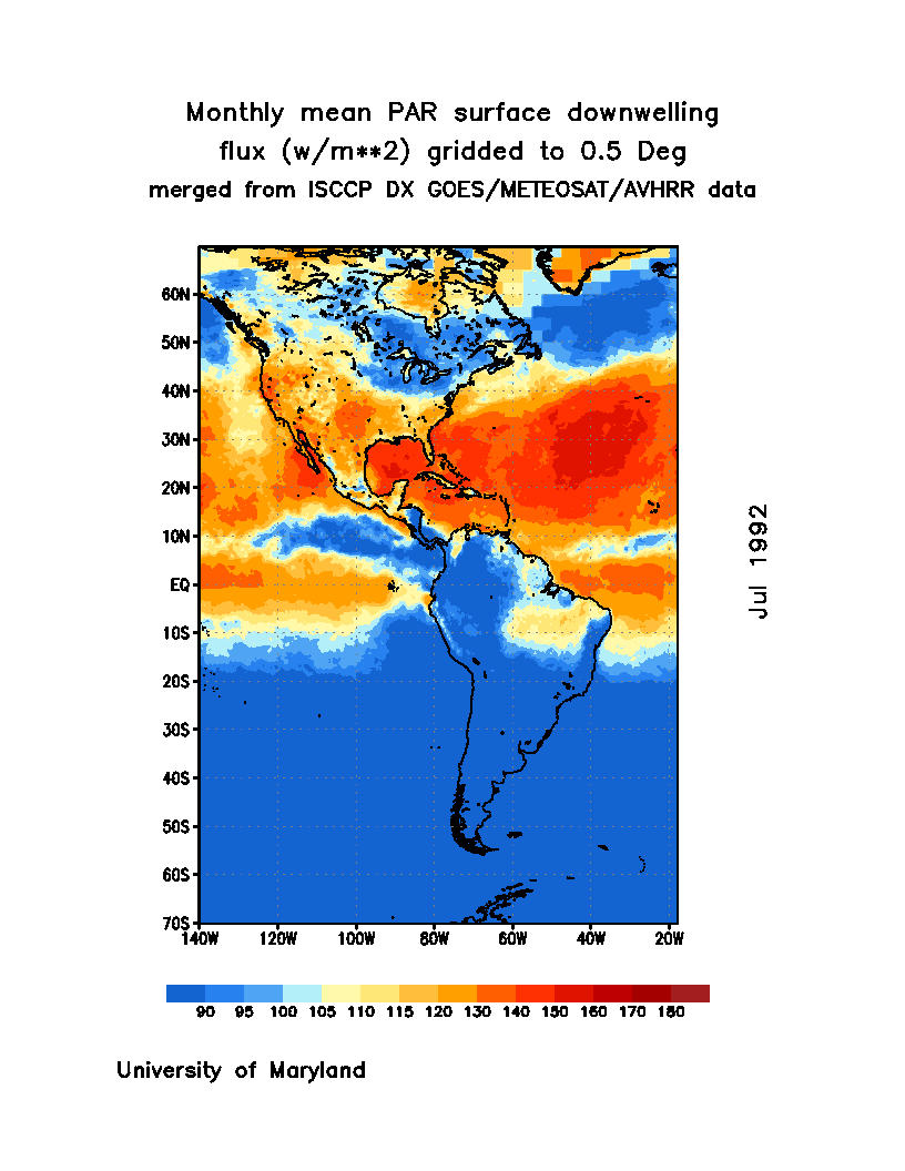 Monthly Mean PAR Surface Downward Flux (Wm
