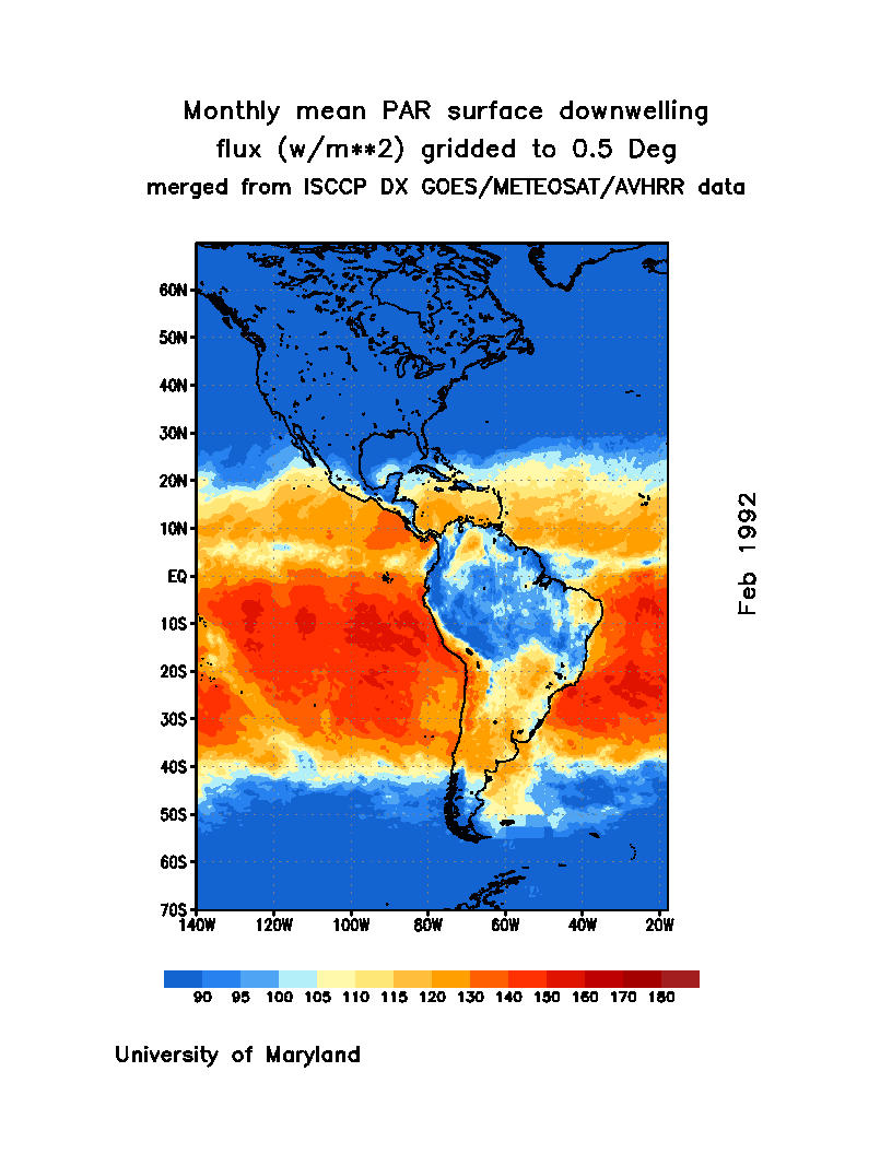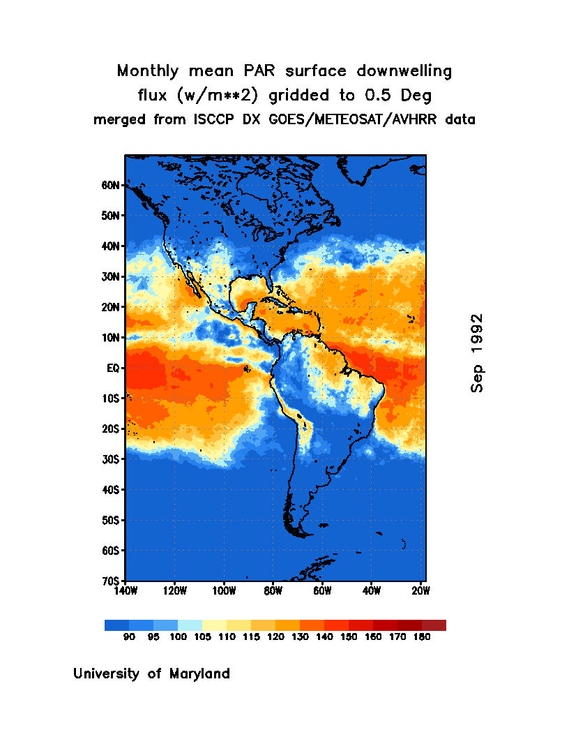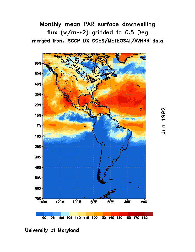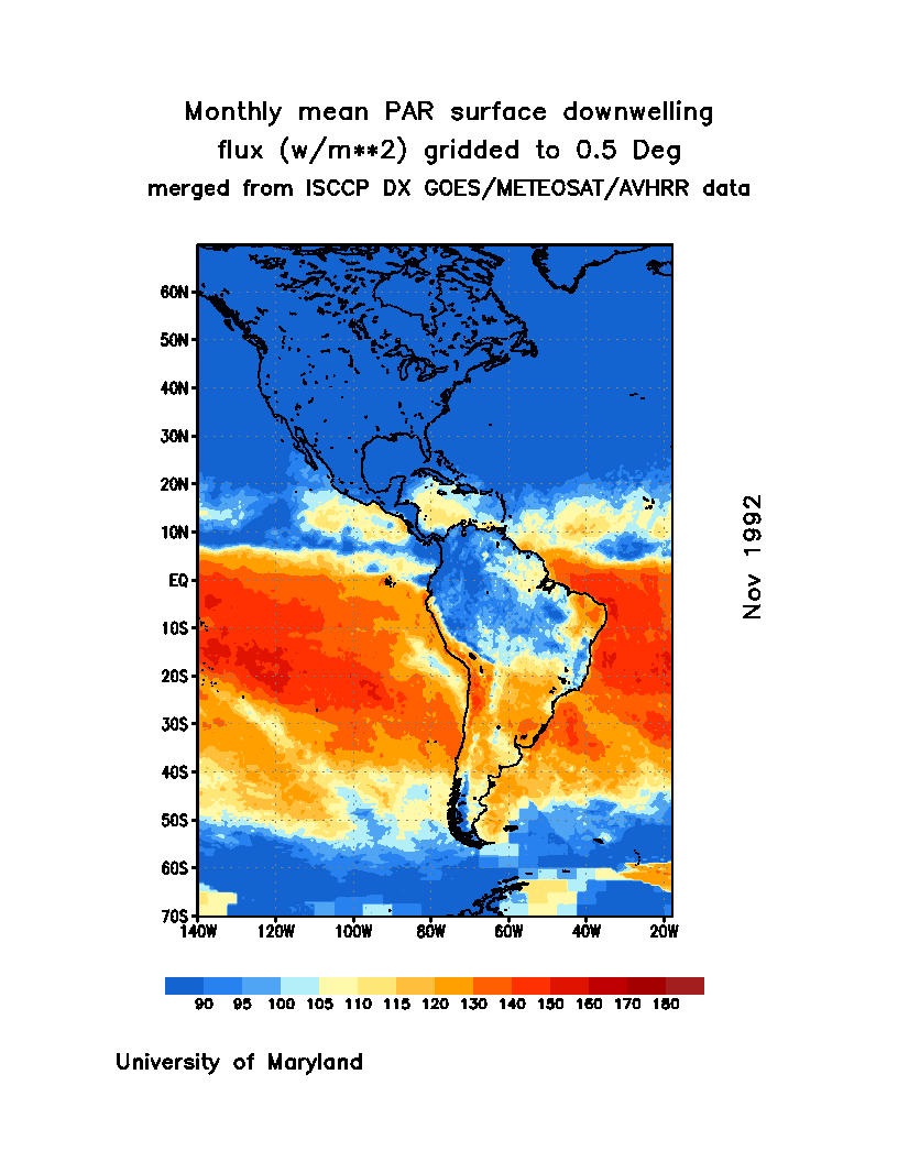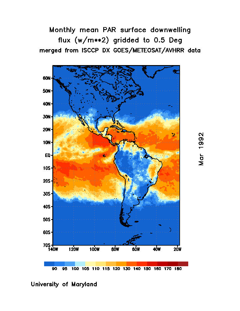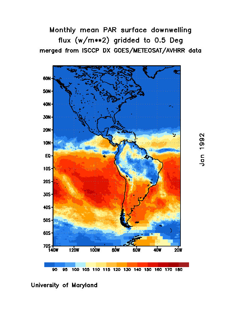 Monthly Mean PAR Surface Downward Flux (Wm
